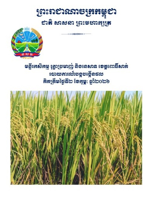 របាយការណ៍បង្កបង្កើនស្រូវរដូវប្រាំងគិតត្រឹម ថ្ងៃទី២ ខែកុម្ភៈ ឆ្នាំ២០២៦