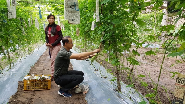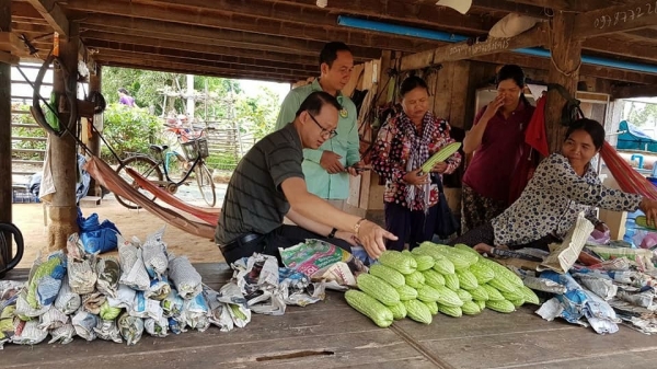 ថ្ងៃសុក្រ ៥កើត ខែភទ្របទ ឆ្នាំច ពស២៥៦២ ត្រូវនឹងថ្ងៃទី ១៤ ខែកញ្ញា ឆ្នាំ២០១៨ លោក ហៃ ធូរ៉ា អនុប្រធានមន្ទីរកសិកម្ម បានដឹកនាំក្រុមការងារកម្មវិធី ASPIRE ថ្នាក់ខេត្ត និងលោកប្រធានសហគមន៍ បានចុះពិនិត្យសកម្មភាពដាំដុះនិងប្រមូលផលបន្លែ ម្រះ របស់ក្រុមផលិតនៅក្នុងសហគមន៍កសិកម្មឧត្តមបៃតងជ្រែង ភូមិជ្រែង ឃុំស្វាយលួង ស្រុកកណ្តៀង ខេត្តពោធិ៍សាត់ ព្រមទាំងណែនាំអោយសហគមន៍កសិករកត់ត្រាចំណាយ ចំណូលពីផលិតកម្មអោយបានច្បាស់លាស់ ដើម្បីវិភាគសេដ្ឋកិច្ច ថាចំណាយថ្លៃដើមធាតុចូល និងចំណេញវាអាចបំពេញតាមតម្រូវការជីវភាព។បើមិនតុល្យភាពគ្នាគួតែស្វែងរកវិធីសា្រស្តកាត់បន្ថយថ្លៃដើម និងបង្កើនការស្វែងរកទីផ្សាបន្ថែម។