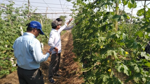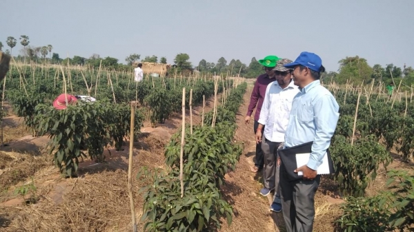 ព្រឹកថ្ងៃអង្គារ ៥កើត ខែចេត្រ ឆ្នាំច សំរឹទ្ធិស័ក ព.ស ២៥៦២ ត្រូវនឹងថ្ងៃទី៩ ខែមេសា ឆ្នាំ២០១៩ ក្រុមការងារមន្ទីរកសិកម្ម ការិយាល័យក្សេត្រសាស្ត្រនិងផលិតភាពកសិកម្ម មន្ត្រីទទួលបន្ទុកដំណាំបន្លែស្រុកកណ្តៀង បានអមដំណើរក្រុមការងារថ្នាក់ជាតិគម្រោងជម្រុញផលិតកម្មស្បៀងអគ្គនាយកដ្ឋានកសិកម្ម ចុះពិនិត្យ និងវាយតម្លៃលើការដាំដុះបន្លែការអនុវត្តកសិកម្មល្អ GAP របស់ក្រុមកសិករនៅភូមិសន្លុង និងភូមិជ្រែង ឃុំស្វាយលួង ស្រុកកណ្តៀងខេត្តពោធិ៍សាត់។