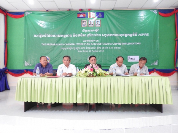 ថ្ងៃអង្គារ៥រោចខែស្រាឍណ៍ ឆ្នាំកុរ ពស២៥៦៣ ត្រូវនឹងថ្ងៃទី២០ខែ សីហា ឆ្នាំ២០១៩ លោក ហៃ ធូរ៉ា អនុប្រធានមន្ទីរបានចូលរួមស្តីពីសិក្ខាសាលារៀបចំសេចក្តីព្រាងផែនការសកម្មភាព និងថវិកា (AWPB) ឆ្នាំ២០២០ និងតម្រង់ទីប្រឹក្សាកម្មវិធី របស់កម្មវិធីផ្សព្វផ្សាយបច្ចេកទេសថ្មីដែលធន់ទៅនឹងការប្រែប្រួលអាកាសធាតុ (ASPIRE) រៀបចំដោយ ASPIRE Secretariat MAFFដែលប្រព្រឹត្តទៅនៅថ្ងៃទី១៩~២០ ខែសីហា ឆ្នាំ២០១៩នៅខេត្តស្វាយរៀង ។