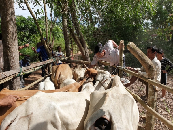 ថ្ងៃព្រហស្បត្តិ៍៧រោច ខែស្រាឍណ៍ ឆ្នាំកុរ ពស២៥៦៣ ត្រូវនឹងថ្ងៃទី២២ ខែ សីហា ឆ្នាំ២០១៩ ក្រុមការងាររបស់ការិយាល័យផលិតកម្ម និងបសុព្យាបាល បានចុះចាក់វ៉ាក់សាំងសារទឹក គោ~ក្របី ជាមួយផ្នែកស្រុកបាកាន និងភ្នាក់ងារ សុខភាពសត្វភូមិក្នុងឃុំអូតាប៉ោង នៅក្នុងភូមិបត់គគីថ្មី បានគោ ក្របីសរុបចំនួន ៧៧ក្បាល /មានក្របី១២ក្បាល ។គិតពីថ្ងៃទី១៦~២២ខែសីហា ឆ្នាំ ២០១៩ សម្រាប់ ឃុំស្នាមព្រះ ឃុំបឹងខ្នារនិងឃុំអូតាប៉ោងចាក់បានគោ~ក្របីសរុបចំនួន៩៥២ក្បាល/ក្របីចំនួន២០៦ក្បាល។