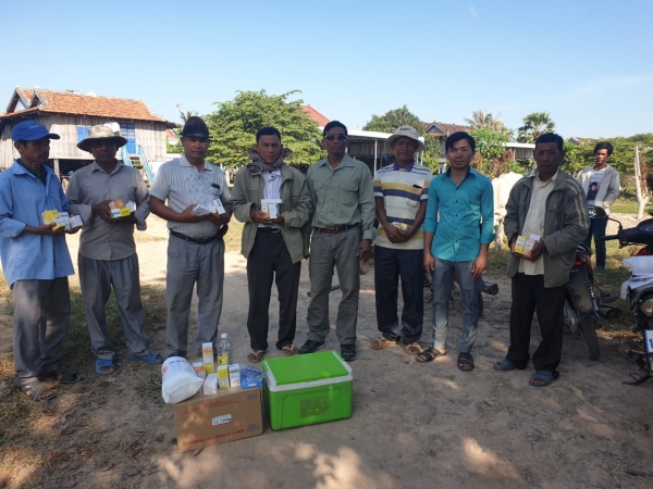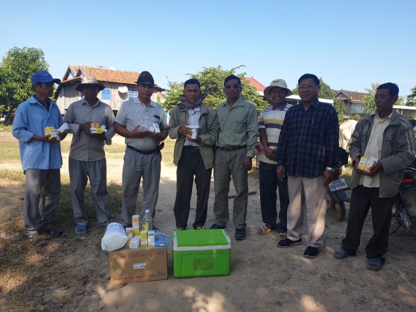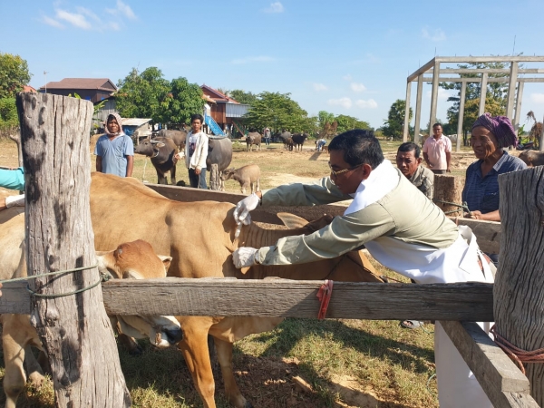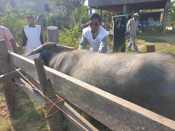 ថ្ងៃសៅរ៍ ៣រោច ខែមិគសិរ ឆ្នាំកុរ ពស ២៥៦៣ ត្រូវនឹងថ្ងៃទី ១៤ ខែ ធ្នូ ឆ្នាំ ២០១៩ លោក ផាត់ សារុន ប្រធានការិយាល័យផលិតកម្មនិងបសុព្យាបាលនៃមន្ទីរកសិកម្ម រុក្ខាប្រមាញ់ និងនេសាទ សហការណ៍ជាមួយពេទ្យសត្វស្រុក ឃុំ និងភូមិ បានចុះចាក់វ៉ាក់ជំងឺសារទឹក និងអុតក្តាម គោ~ក្របី នៅភូមិថ្មី ឃុំរំលេច ស្រុកបាកាន ខេត្តពោធិ៍សាត់ ជាលទ្ធផល ចាក់បានគោ~ក្របី សរុបចំនួន ៩២ក្បាលក្នុងនោះក្របីចំនួន៦៥ក្បាល។