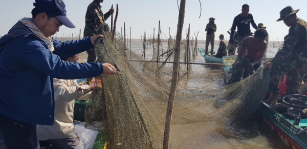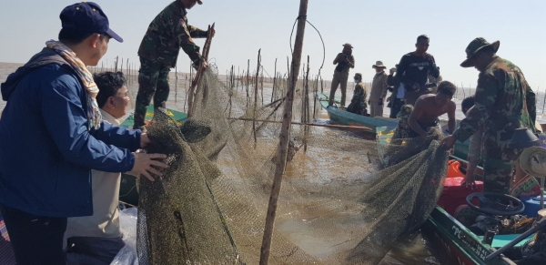 -បំផ្លាញរបាំងបរ ចំនួន ០២ខ្សែ របាំងប្រវែង ៧៥០ម លូកងសាច់អួន០២ គ្រឿង និងបង្គោល ១២០ដើម និងចាក់លែងត្រីចំនួន ០៧គ.ក្រ ចូលទន្លេវិញ (ចំនុចខាងលិចព្រែកក្រ) ។
