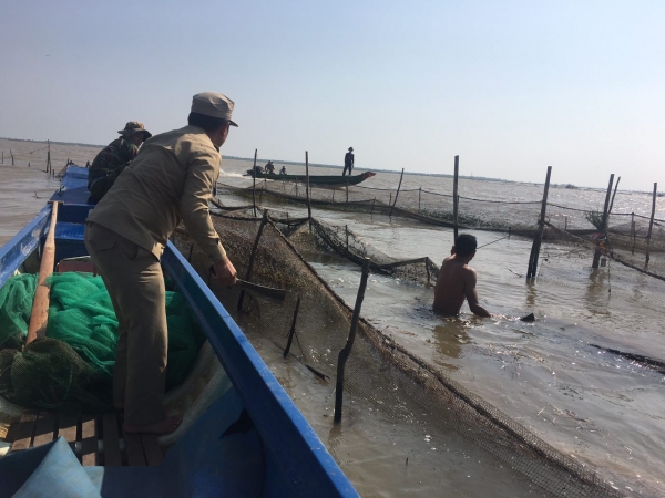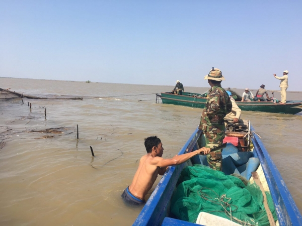 ថ្ងៃសៅរ៍ ៣កើត ខែបុស្ស ត្រូវនឹងថ្ងៃទី ២៨ ខែធ្នូ ២០១៩ ក្រុមការងារចំរុះ ដឹកនាំដោយ លោក ហុង ហ៊ី ប្រធាននាយកដ្ឋានវិវាទ និងនីតិកម្ម នៃរដ្ឋបាលជលផលដោយមានការចូលរួមសហកាណ៍ នាយនាយរងអធិការដ្ឋានខាងត្បូង នាយផ្នែករដ្ឋបាលជលផលក្រគរ នាយសង្កាត់រដ្ឋបាលជល ផលកំពង់លួង និងយោធាខេត្ត ដែលមាន កំលាំង សរុប ៣២ នាក់ កាណូត ០៨ គ្រឿង បាន បង្រ្កាបបទល្មើសនេសាទនៅចំណុច ព្រំប្រទល់ ពោធិ៍សាត់ កំពង់ឆ្នាំង ភូមិកំពង់ថ្គោល ឃុំអន្សារចំបក់ ស្រុកក្រគរ ខេត្ត