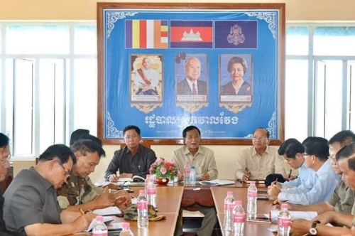 យូ ស៊ុនឡុង រដ្ឋមន្ត្រីប្រតិភូអមនាយករដ្ឋមន្ត្រី ឯកឧត្តមនាយឧត្តមសេនីយ៍ ហ៊ុយ ពិសិដ្ឋ រដ្ឋលេខាធិការក្រសួងការពារជាតិ និងឯកឧត្តមបណ្ឌិត ម៉ៅ ធនិន អភិបាលនៃគណៈអភិបាលខេត្តពោធិ៍សាត់នៅបរិវេណសាលាបឋមសិក្សាប្រម៉ោយ ស្រុកវាលវែង ខេត្តពោធិ៍សាត់។ ក្នុងដំណើរចុះត្រួតពិនិត្យទីតាំងនោះដែរ នាយឧត្តមសេនីយ៍ ក៏បានបើកកិច្ចប្រជុំពិភាក្សាការងារ