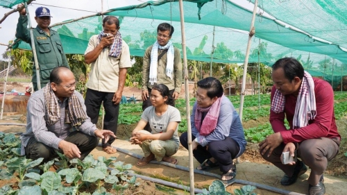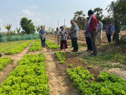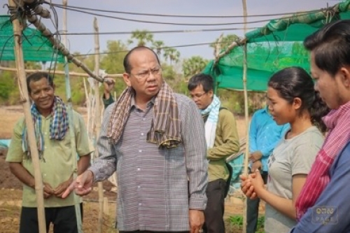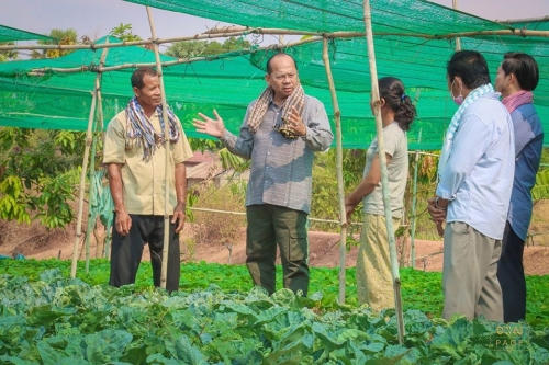 នាព្រឹក ព្រហស្បត្តិ៍ ៣កើត ខែ ចេត្រ ឆ្នាំកុរ ឯកស័ក ព.ស ២៥៦៣ ត្រូវនឹងថ្ងៃទី ២៦ ខែ មីនា ឆ្នាំ ២០២០ ឯកឧត្តម ម៉ៅ ធនិន អភិបាលនៃគណៈអភិបាលខេត្តពោធិ៍សាត់ បានដឹកនាំក្រុមការងារ ចុះត្រួតពិនិត្យសកម្មភាពដាំដុះបន្លែសុវត្ថិភាព តាមបច្ចេកទេសការអនុវត្តន៍កសិកម្មល្អ (GAP) របស់ប្រជាកសិករ ក្នុងភូមិជ្រែង ឃុំស្វាយលួង ស្រុកកណ្តៀង ខេត្តពោធិ៍សាត់ ដែលមាន ការចួលរួមពី លោក ឡាយ វិសិដ្ឋ ប្រធានមន្ទីរ លោក លោកស្រី ថ្នាក់ដឹកនាំមន្ទីរ តំណាងមន្ទីរវិស័យ អាជ្ញាធរដែនដី ថ្នាក់ដឹកនាំការិយាល័យជំនាញពាក់ពន្ធ័ និងមន្រ្តីបច្ចេកទេស បន្លែប្រចាំស្រុកកណ្តៀង ក្រុមការងារផលិតបន្លែសុវត្ថិភាព និងសហគមន៍ ប្រជាកសិករជាច្រើនរូប។បន្ទាប់ពីទស្សនាតាមចំការរបស់កសិករ ដោយផ្ទាល់រួចមក ឯកឧត្តម បណ្ឌិត ម៉ៅ ធនិន បាន កោតសរសេីរអំពីការផលិតបន្លែសុវត្ថិភាពរបស់ក្រុមកសិករប្រកបដោយគុណភាពល្អ និងមានការប្រេី ប្រាស់ប្រព័ន្ធ ស្រោចស្រព ទំនេីប ក្នុងការផលិត ដែលជួយអោយចំណេញពេលវេលា កំលាំងពលកម្ម បង្កេីនផលិតភាពផលិតបានល្អនិង មានទីផ្សារជាពិសេស ឯកឧត្តមផ្សព្វផ្សាយពីវិធានការបង្ការ និងទប់ស្កាត់ជំងឺកូវីដ-១៩ (COVID-19) ដែលកំពុងរាតត្បាតទូទាំងសកលលោក ប៉ុន្តែខណៈនេះខេត្តពោធិ៍សាត់របស់យើង នៅពុំទាន់មានករណីនេះនៅឡើយទេ។ឆ្លៀតក្នុងឱកាសនេះផងដែរ ឯកឧត្តម ម៉ៅ ធនិន ក៏បានចែកជូនវត្ថុកំដរដៃ ដល់បងប្អូនប្រជាពលរដ្ឋដែល បានចូលរួម ក្នុងម្នាក់ៗសារុង១ និងបានពិសាពោត ទឹកត្នោតផ្អែម ក្នុងស្មារតីបង្កើនភាពស្និតស្នាលផងដែរ៕