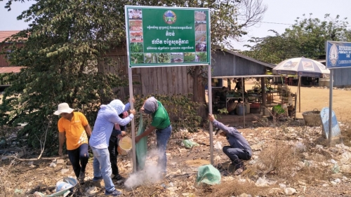 ថ្ងៃពុធ ១រោច ខែ ចេត្រ ឆ្នាំកុរ ឯកស័ក ព.ស ២៥៦៣ ត្រូវនឹងថ្ងៃទី ០៨ ខែ មេសា ឆ្នាំ ២០២០ លោក ហ៊ន់ សុវណ្ណ ប្រធានការិយាល័យផ្សព្វផ្សាយកសិកម្ម និងក្រុមការងារនៃមន្ទីរកសិកម្ម បានតម្លើងផ្ទាំងប៉ាណូ បង្ហាញទីតាំង តំបន់ផលិតបន្លែ សុវត្ថិភាព ចំនួន ០៣ ផ្ទាំង ដាក់នៅតតាមទីតាំងសំខាន់ៗ តាមបណ្តា ភូមិ ចំការអូរ ភូមិ អូររំចេក ឃុំត្រពាំងជង និង ភូមិ ធ្នោះតាចាប ឃុំស្នាមព្រះ ស្រុក បាកាន ខេត្តពោធិ៍សាត់។