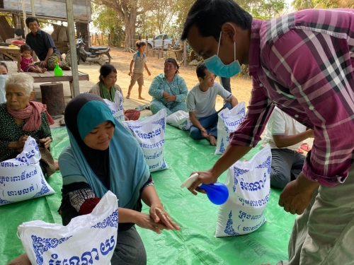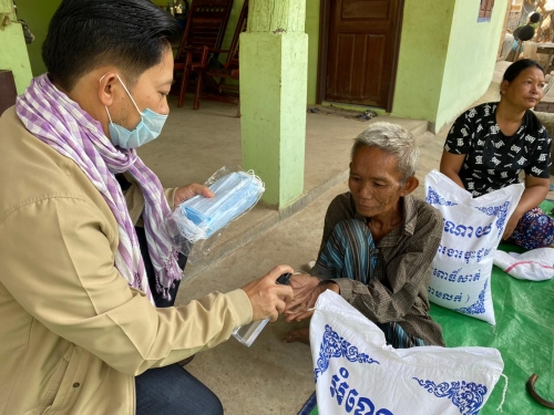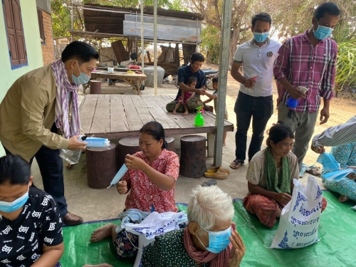 ៤.ពិធីផ្តល់អង្ករ ចំនួន៣០ការ៉ុងនិងម៉ាស់ចំនួន ១០០ម៉ាស់របស់ ឯកឧត្តមប្រធាននិងលោកជំទាវ ចែកជូនដល់បងប្អូនប្រជាពលរដ្ឋដែលខ្វះខាតក្នុងជីវភាព ក្នុងមួយម្នាក់ៗ ទទួលបានអង្ករ១ការ៉ុង (១០គីឡូក្រាម)និងម៉ាស់។