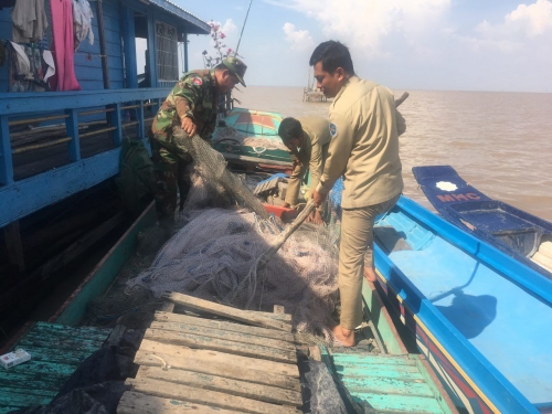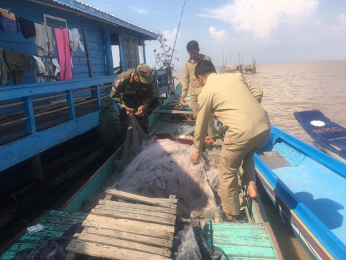 ថ្ងៃអាទិត្យ ១២ រោច ខែ ចេត្រ ឆ្នាំកុរ ទោស័ក ព.ស ២៥៦៣ ត្រូវនឹងថ្ងៃទី ១៩ មេសា ២០២០ ក្រុមការងារចំរុះសង្កាត់រដ្ឋបាលជលផលកំពង់លួង សហការណ៍ជាមួយកងកំលាំងប្រដាបអាវុធខេត្តបានចេញល្បាត ត្រួតពិនិត្យ និងបង្រ្កាបបទល្មើសជលផល នៅចំណុច ក្នុងកន្លែងអភិរក្សជល ផលកំពង់ប្រាក់បង្រ្កាប បានចំនួន ០១ករណីហើយបាន (បំផ្លាញចោល) ៖ មងអូសដៃប្រវែង ៦០ ម x ៣ម x ០,០៣ម ចំនួន ០២ វង់។