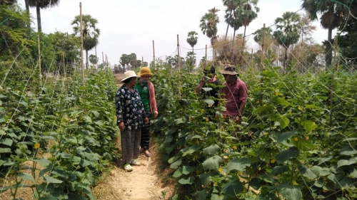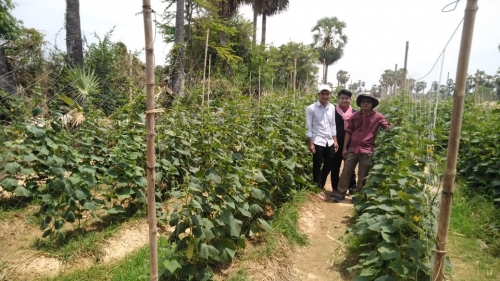 ថ្ងៃពុធ១កើត ខែ ពិសាខ ឆ្នាំជូត ទោស័ក ព.ស ២៥៦៣ ត្រូវនឹងថ្ងៃទី២២ ខែមេសាឆ្នាំ ២០២០ លោក ហ៑ន់ សុវណ្ណ ប្រធានការិ.ផ្សព្វផ្សាយកសិកម្ម និងក្រុមមន្រ្តីទទួលបន្ទុកដំណំាបន្លែប្រចំាស្រុក កណ្តៀងបានចុះទៅដាក់ផ្លាកបន្លែសុវត្ថិភាពនៅតំបន់គោលដៅនិងចុះតាមដានត្រួតពិនិត្យការដំាបន្លែនិងការថែទំាដំណំារបស់កសិករ គល់ ពត ភេទស្រី អាយុ៥៧ឆ្នំា ជាកសិករបង្ហាញគម្រោងជំរុញផលិតកម្មស្បៀង(BFP)នៅភូមិសន្លុង ឃុំ ស្វាយលួង ស្រុកកណ្តៀង ។តាមការសាកសួរពីការដាំដុះ លោកស្រីបានលើកថាៈបានដាំ ស្ពៃចង្កឹះនិងស្ពៃខៀវក្នុងផ្ទះសំណាញ់ទំហំ៣អា,ដំណំាកំពុងថែទំាមានដំណំាត្រសក់(ផ្ទៃដី៥អា)និងគ្រោង នឹងដំាបន្លែប៉េងប៉ោះ(ផ្ទៃដី៥អា),សណ្តែកកួរ(៥អា)និងត្រសក់(៥អា)បន្ថែមទៀត។ ជាមួយគ្នាដែរនេះក្រុមការងារមន្ទីរបានផ្តល់ប្រឹក្សាបច្ចេកទេសដល់កសិករនិងលើកទឹកចិត្តអោយកសិករធ្វើជីកំប៉ុស្តិ៍ទឹក និងថ្នំាពុលធម្មជាតិបន្តទៀតដើម្បីកាត់បន្ថយការចំណាយលើធាតុចូលនៃផលិតកម្មដំណំាបន្លែ និងអាចរកប្រាក់ចំណេញបានច្រើន។