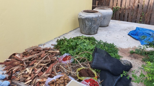 -ដំមើមរំដេងអោយបែក បន្ទាប់មកយកវត្ថុធាតុផ្សំទាំងអស់ដាក់បញ្ចូលគ្នា រួចច្រកក្នុងស្បៃហើយយកខ្សែចង យកទៅត្រាំក្នុងពាង រួចយកដុំថ្មសង្កត់ដើម្បីកុំអោយវាអណ្ដែត និង ចាក់ទឹក២០០លីត្រចូលពាងរួចក្របគំរបអោយជិត។ បន្ទាប់ពីគ្របរួចត្រូវកូរល្បាយថ្នាំ ២-៣ដង ក្នុង០១ថ្ងៃ មុនបើកគំរបពាងកូរត្រូវបង្ហើបគំរបបន្តិចសិនមុននឹងកូរល្បាយថ្នាំត្រូវកូរជារង្វង់ដើម្បីអោយល្បាយសព្វល្អ។ជាចុងក្រោយ