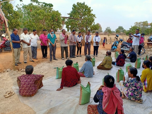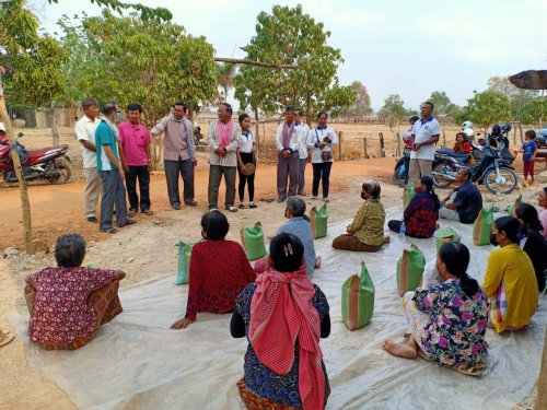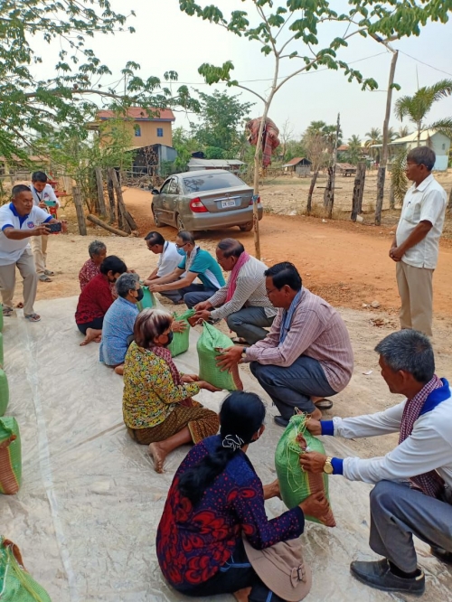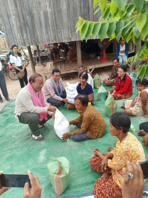បន្ទាប់មកលោកបាននាំអង្ករ ឯកឧត្តមអភិបាលខេត្ត និងលោកជំទាវ ចំនួន៣០ការ៉ុង (មួយការ៉ុង=១០ គីឡូក្រាម)ក្នុងមួយគ្រួសារៗទទួលបានអង្ករ ១ការ៉ុង។ ក្នុងនោះដែរលោក ចាប នាង អភិបាលក្រុង បានទទួលសំណូមពរបងប្អូនប្រជាពលរដ្ឋចាក់ដី ស បំពេញផ្លូវលំ ដែរពួកគាត់អស់លទ្ធភាព និងបានជូនថវិកាចំនួន៤៥.០០០រៀល ជូនដល់ស្រី្តជាជំងឺផងដែរ។