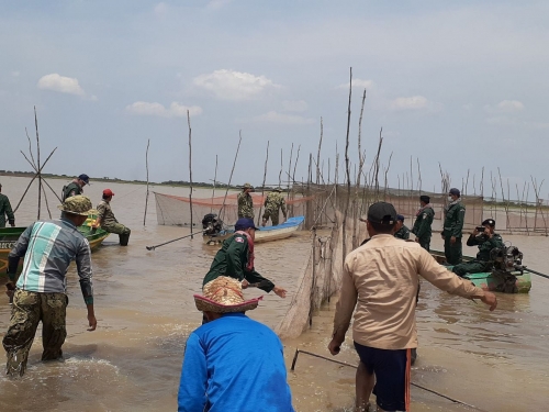 ផ្នែករដ្ឋបាលជលផល រាំងទិលដោយមានកម្លាំងអធិការនគរបាលស្រុកបាកាន ប៉ុស្តិនគរបាលរដ្ឋបាលឃុំមេទឹក-បរិស្ថាន -កម្លាំងប្រតិបត្តិការសឹក រងខេត្តពោធិ៍សាត់ - សហគមន៏នេសាទព្រែកក្រ