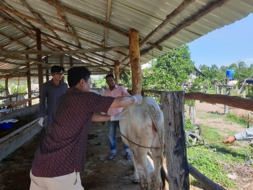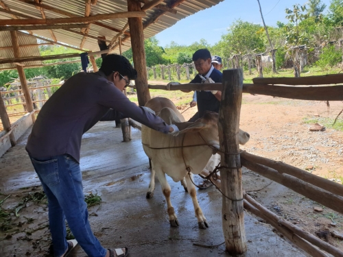 ថ្ងៃពុធ១៣កើត ខែ ជេស្ឋ ឆ្នាំជូត ទោស័ក ព.ស២៥៦៤ ត្រូវនឹងថ្ងៃទី ០៣ ខែ មិថុនាឆ្នាំ២០២០លោក ផាត់ សារុន ប្រធានការិយាល័យផលិតកម្ម និងបសុព្យាបាល បានដឹកនាំក្រុមការងារការិយាល័យផលិតកម្មនិងបសុព្យាបាលនៃមន្ទីរកសិកម្មរុក្ខាប្រមាញ់និងនេសាទ ខេត្តពោធិ៍សាត់បានចុះចាក់ថ្នាំវ៉ាក់សាំងសារទឹកគោ និងអុតក្តាមជូនដល់កសិករមួយគ្រួសារមានគោចំនួន២៥ក្បាល នៅភូមិទួលគ្រួស សង្កាត់ចម្រើនផល ក្រុងពោធិ៍សាត់