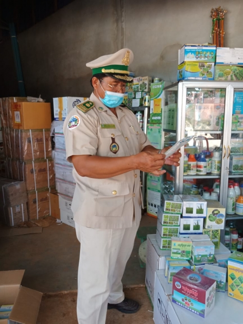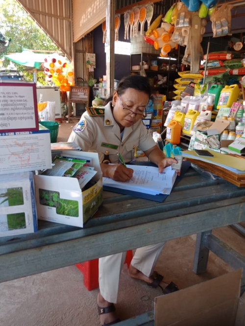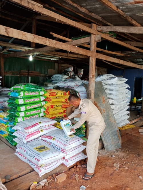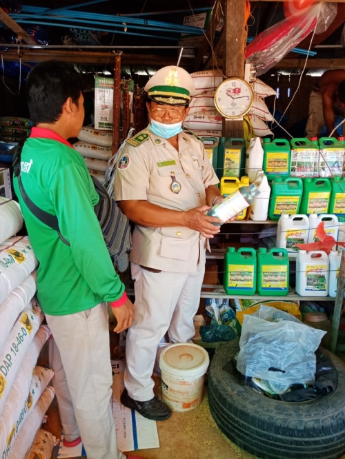ថ្ងៃព្រហស្បត្តិ៍៦រោច ខែ ជេស្ឋ ឆ្នាំជូត ទោស័ក ព.ស២៥៦៤ ត្រូវនឹងថ្ងៃទី ១១ ខែ មិថុនា ឆ្នាំ ២០២០ លោក ឡេងចិន្ដាមុនី ប្រធានការិយាល័យ នីតិកម្មកសិកម្មនិងមន្ត្រីបានចុះពង្រឹងតាមដានត្រួតពិនិត្យការតាំងលក់ជីកសិកម្មនិងថ្នាំកសិកម្ម សរុប៣ដេប៉ូនៅផ្សារបត់រំដួល ឃុំផ្ទះរុង ស្រុកតាលោសែនជ័យ ខេត្តពោធិ៍សាត់។ ក្រុមការងារបានណែនាំអាជីវករត្រូវរៀបចំការតាំងលក់សំមា្ភរកសិកម្ម ឲមានរបៀបរៀបរយមានសណ្តាប់ធ្នាប់និង មានសុវត្ថិភាព។