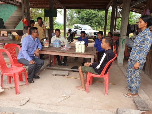 ១- សួរសុខទុក្ខភ្នាក់ងារសុខភាពសត្វភូមិ ឈ្មោះ តាំ រ នៅភូមិ សោមសាន្ត ឃុំតាលោ ដែល មានជំងឺរ៉ាំរ៉ៃជាច្រើនឆ្នាំកន្លងមក ។
