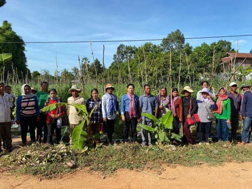 ថ្ងៃ សៅរ៍៦ រោច ខែ អាសាឍ ឆ្នាំជូត ទោស័ក ព ស ២៥៦៤ ត្រូវនិងថ្ងៃទី ១១ ខែ កក្កដា ឆ្នាំ ២០២០ លោក ឡាយ វិសិដ្ឋ ប្រធាន មន្ទីរកសិកម្ម រុក្ខាប្រមាញ់ និងនេសាទ ខេត្តពោធិ៍សាត់និងក្រុម ការងារបានទទួលស្វាគមន៍ទស្សន:កិច្ចសិក្សាដឹកនាំដោយលោក ឈាវ គុច ប្រធានក្រុមប្រឹក្សាឃុំ និងជាមេឃុំ មេទឹក ដើម្បីរៀនសូត្រពី បទពិសោធន៍ ស្តីពី បច្ចេកទេសដាំដុះដំណាំបន្លែ ពីក្រុមកសិករគម្រោងជម្រុញផលិតកម្មស្បៀង(BFP) របស់កសិកប្រើប្រាស់ទឹក មកពីភូមិកោះខ្សាច់ និងភូមិ តាម៉ុំ ឃុំមេទឹក ចំនួន៤០នាក់/ស្រី២៨នាក់ នៅភូមិ អូររំចេក ឃុំត្រពាំងជង ស្រុក បាកាន ដើម្បីបង្កើនចំណេះដឹង និងបច្ចេកទេសកសិកម្មថ្មី សម្រាប់ ប្រកបរបរកសិកម្ម ដាំបន្លែសុវត្ថិភាព លើកកំពស់ជីវភាពកសិករ ក្នុងកំឡុងពេលរីករាលដាលនៃជំងឺកូវីដ១៩ ។ កម្មវិធីទស្សនៈកិច្ចនេះ ធ្វើឡើងស្របតាមអនុសាសន៍ របស់ឯកឧត្តម ស៊ុយ សែម រដ្ឋមន្រ្តីក្រសួងរ៉ែ និងថាមពល និងជាប្រធានក្រុមការងារចុះជួយខេត្តពោធិ៍សាត់ ក្រោយពីឯកឧត្តម បានជួយជីកស្រះ សម្រាប់ផ្គត់ផ្គង់ទឹកប្រើប្រាស់ និងស្រោព ស្រព បន្លែ និងប្រកបមុខរបរកសិកម្មផ្សេងទៀត។ ក្រុមប្រតិភូបាន ចុះពិនិត្យចំការត្រសក់ ០១កន្លែង មានផ្ទៃដីទំហំ ៥០ អា កំពុងប្រមូលផលជាបណ្តើរៗ របស់កសិករ ឈ្មោះ នួន សុគន្ធា និងចំការដំណាំស្ពៃ របស់ លោកស្រី ជូ វើន មានផ្ទៃដី ទំហំ ១០ អា។