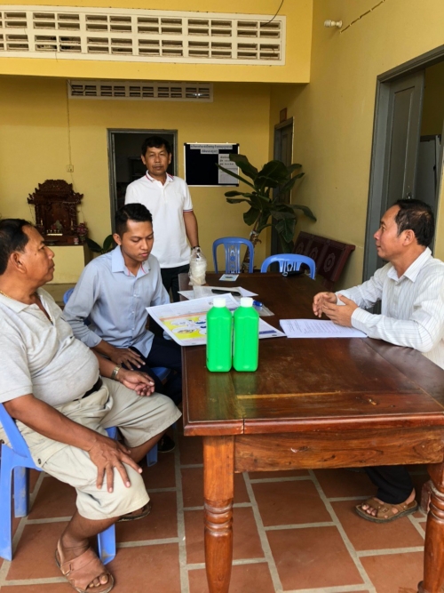 - ផ្តល់ជូនថ្នាំរំងាប់មេរោគ ២ដប និង អាវ បាញ់ ថ្នាំ ០៥កំប្លេរ