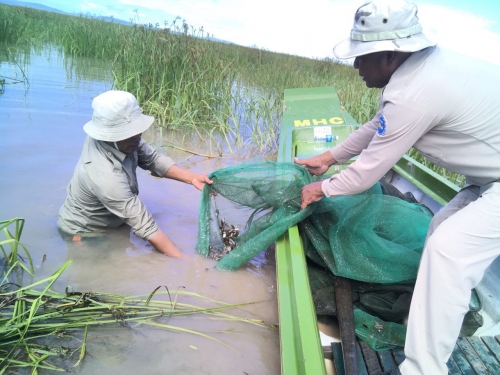 - ចាក់លែងកូនត្រីចំរុះ ២៥ គីឡូក្រាម ។