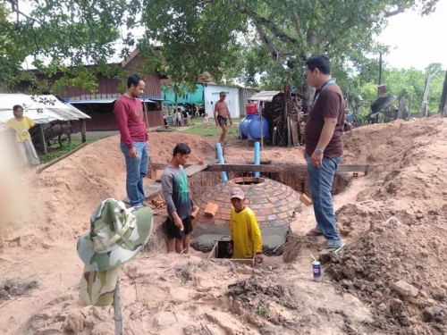 ថ្ងៃសៅរ៍ ៤រោច ខែស្រាពណ៏ ឆ្នាំជូត ទោស័ក ព.ស. ២៥៦៤ ត្រូវនឹងថ្ងៃទី៨ ខែសីហា ឆ្នាំ២០២០ លោក ផាត់ វុទ្ធី មន្ត្រីរដ្ឋបាលកម្មវិធីឡជីវឧស្ម័ននៃមន្ទីរកសិកម្មរុក្ខាប្រមាញ់ និងនេសាទ ខេត្តពោធិ៍សាត់ និង លោក ផន សុភា មន្រ្តីការិយាល័យផលិតកម្ម និងបសុព្យាបាល រួមជាមួយក្រុមហ៊ុនជាងប្រចាំស្រុកកណ្តៀង បានចុះត្រួតពិនិត្យការសាងសង់ឡជីវឧស្ម័ន ទំហំ ៦ ម៉ែត្រគូនៅភូមិ អូរថ្កូវ សង្កាត់រលាប ក្រុងពោធិសាត់ ។ តាមការពិនិត្យ លក្ខណៈបច្ចេកទេស ការសាងសង់សម្រេចបាន ៧០%ហេីយ។