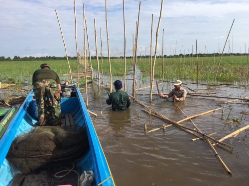ថ្ងៃចន្ទ ១៣រោច ខែស្រាពណ៍ ឆ្នាំជូត ទោស័ក ព.ស ២៥៦៤ ត្រូវនឹងថ្ងៃទី១៧ ខែសីហា ឆ្នាំ២០២០ សមត្ថកិច្ចសង្កាត់រដ្ឋបាលជលផលកណ្ដៀង ដឹកនាំដោយ លោក ហុក ម៉េង អានសហការជាមួយយោធាខេត្ត និងប៉ូលីសស្រុក បានចុះប្រតិបត្តិការត្រួតពិនិត្យ និងបង្រ្កាបបទល្មើសជលផល នៅចំណុច ក្រឡុកក្ដាន់ ភូមិកោះក្អែក ឃុំរាំងទិល ស្រុកកណ្ដៀង ជាលទ្ធផលបាន ០១ ករណី វត្ថុតាង (បំផ្លាញចោល)៖