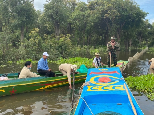 ថ្ងៃពុធ ១កើត ខែភទ្របទឆ្នាំជូត ទោស័ក ព.ស ២៥៦៤ ត្រូវនឹងថ្ងៃទី ១៩ខែសីហា ឆ្នាំ ២០២០ លោក ឡាយ វិសិដ្ឋ ប្រធានមន្ទីរ រួមជាមួយ ភ៉ំ វិមល លោកនាយខណ្ឌជលផលពោធិ៍សាត់ នាយផ្នែកក្រគរ សង្កាត់រដ្ឋបាលជលផលកំពង់លួង សហការជាមួយកម្លាំងយោធានៃតំបន់ប្រតិបត្ដិការសឹករងខេត្ដពោធិ៍សាត់ បានចេញប្រតិបត្ដិការបង្រ្កាបបទល្មើសនេសាទចាប់ពីចំនុចឃ៉ំកំពង់លួង រហូតដល់ ភូមិ កំពង់លើ ឃ៉ំក្បាលត្រាច ស្រុកក្រគរ ជាលទ្ធផលបង្រ្កាបបាន ០១ ករណី វត្ថុតាងបំផ្លាញចោលរួមមាន :