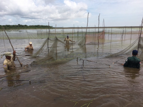ថ្ងៃសុក្រ ៣កើត ខែភទ្របទ ឆ្នាំជូត ទោស័ក ព.ស ២៥៦៤ ត្រូវនឹងថ្ងៃទី២១ ខែសីហា ឆ្នាំ២០២០ សមត្ថកិច្ចសង្កាត់រដ្ឋបាលជលផលកណ្ដៀង ដឹកនាំដោយ លោក ហុក ម៉េង អានសហការជាមួយយោធាខេត្ត និងប៉ូលីសស្រុកបានចុះប្រតិបត្តិការត្រួតពិនិត្យ និងបង្រ្កាបបទល្មើសជលផល នៅចំណុច ជ្រោយហាលស្លា ដល់ព្រែកសាឡិត ភូមិ រាំងទិល ឃុំរាំងទិល ស្រុកកណ្ដៀង ជាលទ្ធផលបាន ០២ ករណី វត្ថុតាង (បំផ្លាញចោល)៖
