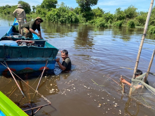 ថ្ងៃច័ន្ទ ៦កើត ខែភទ្របទ ឆ្នាំជូត ទោស័ក ព.ស ២៥៦៤ ត្រូវនឹងថ្ងៃទី២៤ ខែសីហា ឆ្នាំ២០២០ សមត្ថកិច្ចសង្កាត់រដ្ឋបាលជលផលកណ្ដៀង ដឹកនាំដោយ លោក ហុក ម៉េង អាន សហការជាមួយយោធាខេត្ត ប៉ូលីសស្រុក និង បរិស្ថាន បានចុះប្រតិបត្តិការត្រួតពិនិត្យ និងបង្រ្កាបបទល្មើសជលផល នៅចំណុច ព្រែក រាំងទិល ដល់ ព្រែកកំពង់គុជ ភូមិព្រែក ឃុំរាំងទិល ស្រុកកណ្ដៀង ជាលទ្ធផលបាន ០១ករណី វត្ថុតាង (បំផ្លាញចោល)៖