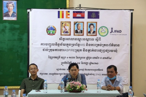 ថ្ងៃព្រហស្បត្តិ៍១រោច ខែភទបទ្រ ឆ្នាំជូត ទោស័ក ព.ស២៥៦៤ ត្រូវនឹងថ្ងៃទី ០៣ ខែ សីហាឆ្នាំ ២០២០ លោក ឡាយ វិសិដ្ឋ ប្រធានមន្ទីរ រួមជាមួយលោក ហៃ ធូរ៉ា អនុប្រធានមន្ទីរ បានអញ្ជើញជាអធិបតីភាពក្នុងសិក្ខារសាលាបណ្តុះបណ្តាល ស្តីពីការបញ្ចូលទិន្នន័យក្នុងប្រព័ន្ធ MIS និងការគ្រប់គ្រងព័ត៌មានដល់ក្រុមការងារ ASIPIRE ស្រុក និងភ្នាក់ងារផ្សព្វផ្សាយឃុំ ដោយសរុបអ្នកចូលរួមចំនួន២៥រូប ស្រី ០៨រូប។ នាឱកាសនោះ លោកប្រធានមន្ទីរ ក៏បានលើកឡើងជាអនុសាសន៍ថា ចំពោះកិច្ចការងារនេះ ដែលក្រុមងារកំពុងអនុវត្ត ជាទុនមួយដល់សំខាន់សម្រាប់ថ្ងៃអនាគត បើទោះបីជាទៅប្រកបការងារនៅកន្លែងផ្សេងៗក៏ដោយ ដូច្នេះសូមឱ្យក្រុមការងារផ្សព្វផ្សាយឃុំទាំងអស់ យកចិត្តទុកដាក់បំពេញការងារឱ្យបានជោគជ័យ និងស្វែងយល់គ្រប់ជ្រុងជ្រោយ។