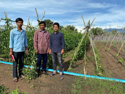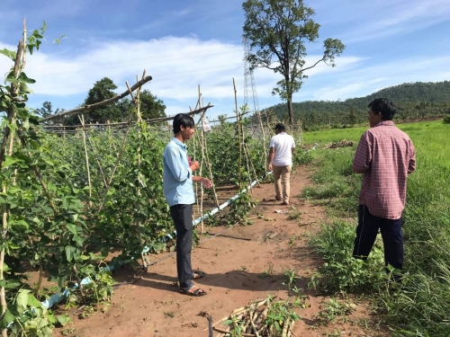 ថ្ងៃអង្គារ៍៦រោច ខែភទបទ្រ ឆ្នាំជូត ទោស័ក ព.ស២៥៦៤ ត្រូវនឹងថ្ងៃទី ០៨ ខែ សីហាឆ្នាំ ២០២០ លោក អេង សៅណាត អនុប្រធានការិយាល័យ កសិកម្ម ធនធានធម្មជាតិ និងបរិស្ថាន និងជាមន្រ្តីកម្មវិធីបច្ចេកទេសថ្មី ដែលធន់នឹងការប្រែប្រួលអាកាសធាតុ បានចុះតាមដាន និងជម្រុញការដាំដុះបន្លែសណ្តែកកួរ របស់ក្រុមបណ្តំអាជីវកម្មបន្លែ ភូមិស្ទឹងថ្មី ឃុំ ប្រម៉ោយ ស្រុកវាលវែង។