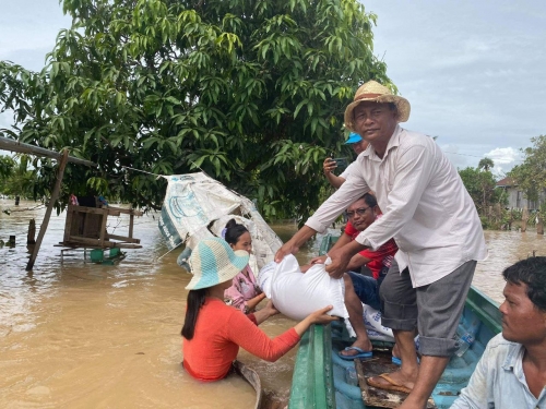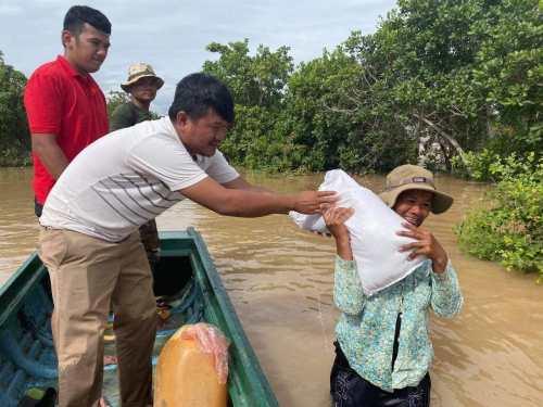 ថ្ងៃចន្ទ ១០រោច ខែអស្សុជ ឆ្នាំជូត ទោស័ក ព.ស ២៥៦៤ ត្រូវនឹងថ្ងៃទី១២ ខែ តុលា ឆ្នាំ២០២០ ក្រុមការងារខណ្ឌរដ្ឋបាលជលផលនៃមន្ទីរកសិកម្មរុក្ខាប្រមាញ់និងនេសាទ នៅបន្តចូលរួមជាមួយគណៈបញ្ជាការឯកភាពរដ្ឋបាលខេត្តក្រោមការដឹកនាំដ៏ខ្ពង់ខ្ពស់ ឯឧ បណ្ឌិត ម៉ៅ ធនិន បានប្រើប្រា់ស់កាណូត ចំនួន ៧ គ្រឿង ជួយសង្គ្រោះ និងចែកអង្ករ ដែលជាអំណោយរបស់ ឯ ឧ បណ្ឌិត ជូនប្រជាពលរដ្ឋដែលរងគ្រោះដោយទឹកជំនន់ ។