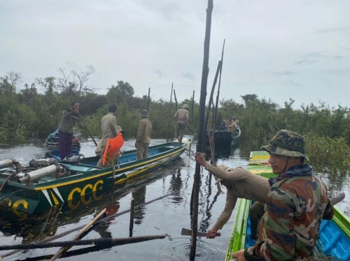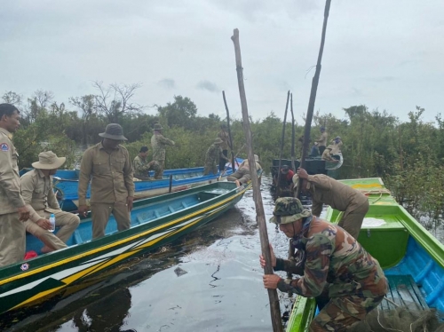 អធិការដ្ឋានរដ្ឋបាលជលផលខាងត្បូងបឹងទន្លេសាប យោធាខេត្ត មន្រ្ដីបរិស្ថានកំពង់លួង កម្លាំងB05ទទួលទិសកំពង់លួង កម្លាំង សរុប ២១ នាក់ មធ្យោបាយកាណូតចំនួន ០៥ គ្រឿងបានចុះត្រួតពិនិត្យ និងបង្រ្កាបបទល្មើសជលផល នៅចំនុចក្នុងនាទីព្រៃ លិចទឹក ជ្រោយស្ដី ភូមិត្រពាំងរំដេញ ឃ៉ំ ក្បាលត្រាច ស្រុកក្រគរជាលទ្ធផល បាន ០២ករណី បំផ្លាញចោល ៖