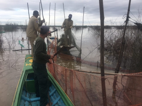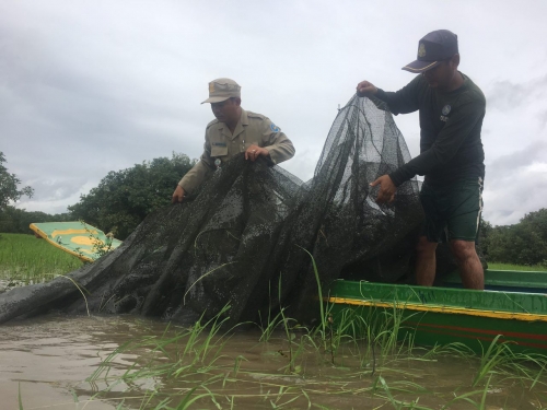 ថ្ងៃច័ន្ទ ៣កើត ខែកត្ដិក ឆ្នាំជូត ទោស័ក ព.ស ២៥៦៤ ត្រូវនឹងថ្ងៃទី១៩ ខែតុលា ឆ្នាំ ២០២០ សមត្ថកិច្ចសង្កាត់រដ្ឋបាលជលផលកណ្ដៀង ដឹកនាំដោយ លោក ហុក ម៉េងអាន នាយសង្កាត់ សហការណ៍ជាមួយប៉ូលីសស្រុក និងយោធាខេត្ត បានចុះប្រតិបត្តិការត្រួតពិនិត្យ និងបង្រ្កាបបទល្មើសជលផល នៅចំណុច ក្បាល ជ្រោយកោះកែវ ភូមិរាំងទិល ឃុំរាំងទិល ស្រុកកណ្ដៀងជាលទ្ធផល បាន ០១ ករណី វត្ថុតាង (បំផ្លាញចោល)៖