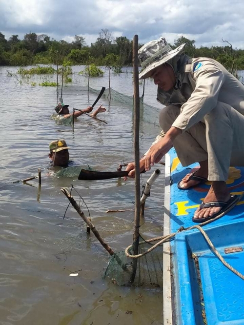 ថ្ងៃព្រហស្បតិ៍ ៥ រោច ខែកត្តិក ឆ្នាំជូត ទោស័ក ព ស ២៥៦៤ ត្រូវថ្ងៃទី ៥ខែ វិច្ឆិកា ឆ្នាំ ២០២០ ផ្នែករដ្ឋបាលជលផល រាំងទិល រួមសហការជាមួយយោធាខេត្តបានចេញប្រតិបត្តិការចុះទៅចំណុច បឹងព្រួច ភូមិក្អមសំណ ឃុំមេទឹក ស្រុកបាកាន បានជួបការនេសាទដោយឧបករណ៏ទំនើបសមត្ថកិច្ចចម្រុះបានធ្វើការបំផ្លាញចោលនូវនឹងកន្លែងបាន០១ករណីវត្ថុតាងរួមមាន ៖