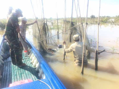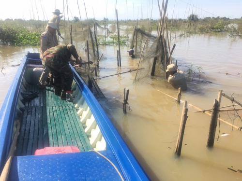 ថ្ងៃព្រហស្បតិ៍ ៤កើត ខែមឹគសិរ ឆ្នាំជូត ទោស័ក ព.ស ២៥៦៤ ត្រូវនឹងថ្ងៃទី១៩ ខែវិច្ឆិកា ឆ្នាំ២០២០ សមត្ថកិច្ចសង្កាត់រដ្ឋបាលជលផលកណ្ដៀង ដឹកនាំដោយ លោក ហុក ម៉េងអាន នាយសង្កាត់ សហការណ៍ជាមួយយោធាខេត្ត បានចុះប្រតិបត្តិការត្រួតពិនិត្យ និងបង្រ្កាបបទល្មើសជលផល នៅចំណុច ក្រឡុកអន្ទង់វល្លិ៍ ភូមិកោះក្អែក ឃុំរាំងទិល ស្រុកកណ្ដៀង ជាលទ្ធផល វត្ថុតាង (បំផ្លាញចោល)៖