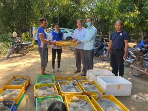 ថ្ងៃព្រហស្បតិ៍ ៤កើត ខែមិគសិរ ឆ្នាំជូត ទោស័ក ព.ស.២៥៦៤ ត្រូវនឹងថ្ងៃទី១៩ ខែវិច្ឆិកា ឆ្នាំ២០២០ លោក ហៃ ធូរ៉ា អនុប្រធានមន្ទីរកសិកម្ម រុក្ខាប្រមាញ់ និងនេសាទខេត្ត ព្រមទាំងក្រុមការងារ បានចូលរួមចែកពូជកង្កែប សម្រាប់សមាជិកបណ្តុំអាជីវកម្មកង្កែប ដែលអនុវត្តសកម្មភាពកិច្ចសន្យាខាងក្រៅ (Contracting Out) ដោយអង្គការអភិវឌ្ឍន៍និងការពារបរិស្ថាន(EPDO) គាំទ្រថវិកា ដោយកម្មវិធីផ្សព្វផ្សាយបច្ចេកទេសកសិកម្មថ្មីធន់នឹងការប្រែប្រួលអាកាសធាតុ (ASPIRE) នៅភូមិពោធិ៍កុធ ឃុំកំពង់ពោធិ៍ ស្រុក