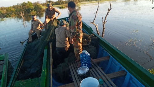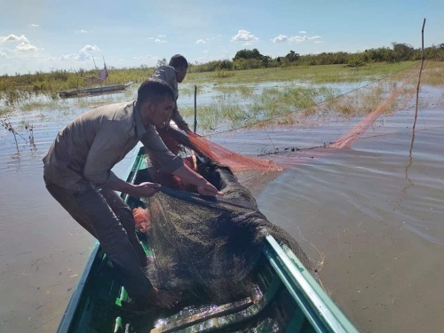 ថ្ងៃសុក្រ ៥កើត ខែមិគសិរ ឆ្នាំជូត ទោស័ក ព.ស ២៥៦៤ ត្រូវនឹងថ្ងៃទី២០ ខែវិច្ឆិកា ឆ្នាំ២០២០ សមត្ថកិច្ចសង្កាត់រដ្ឋបាលជលផលបាកាន ដឹកនាំដោយលោក លឹម សុក្រឹត នាយសង្កាត់សហការណ៍ជាមួយយោធាខេត្ត បានចុះប្រតិបត្តិការត្រួតពិនិត្យ និងបង្រ្កាបបទល្មើសជលផល ពីចំណុចព្រែកដីរនាត ដល់ព្រែកក្អមសំណរ ឃុំមេទឹក ស្រុកបាកាន ជាលទ្ធផល វត្ថុតាង (បំផ្លាញចោល)៖