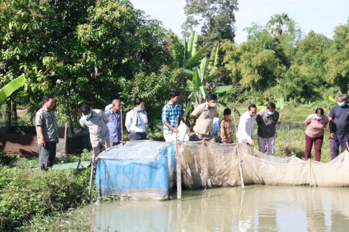 ថ្ងៃអង្គារ៍៨រោច ខែមិគសិរ ឆ្នាំជូត ទោស័ក ព.ស. ២៥៦៤ ត្រូវនឹងថ្ងៃទី០៨ខែធ្នូ ឆ្នាំ២០២០ លោក ឡាយ វិសិដ្ឋ ប្រធានមន្ទីរ រួមជាមួយខណ្ឌរដ្ឋបាលជលផលពោធិ៍សាត់ បានការិយាល័យជំនាញបានចុះត្រួតពិនិត្យការងារចិញ្ចឹមត្រី កង្កែប និងការងារភ្ញាស់កូនត្រី របស់កសិករ សូ យេង ប្រធានបណ្តុំអាជីវកម្មរបស់ កម្មវិធីASPIRE នៅភូមិរោងតាកុក ឃុំរំលេច ស្រុកបាកានខេត្ត ពោធិ៍សាត់។តាមការលើកឡើងរបស់កសិករ បានលើកថា កម្មវិធីASPIRE បានផ្តល់ធាតុចូលសម្រាប់ការងារភ្ញាស់កូនត្រី ដូចជា ត្រីមេពូជ (ត្រីអណ្តែង ទីឡាព្យា ឆ្ពិន)សរុបចំនួន៨០ ក្បាល សំណាញ ថ្នាំអ័ម៉ូន ម៉ូទ័រ ធុងស្មាច់ និងឧបករណ៍សំភារៈមួយចំនួនទៀត។ បច្ចុប្បន្ននេះ កំពុងថែទាំ និង បំប៉នមេពូជទុក សម្រាប់ភ្ញាស់នៅរដូវឆ្នាំក្រោយ។ ចំពោះសមាជិកបណ្តុំអាជីវកម្មដែលមានបំណងចិញ្ចឹមត្រី គាត់និងផ្តល់តាមលទ្ធភាព ដោយលក់តំលៃទាប ឱ្យ។ ចំពោះទីផ្សារមិនជាបញ្ហាទេ សំខាន់ឱ្យតែយើងផលិតបាន ដោយ សារយើងបានរៀបចំកិច្ចសន្យារវាងអ្នកលក់ និង