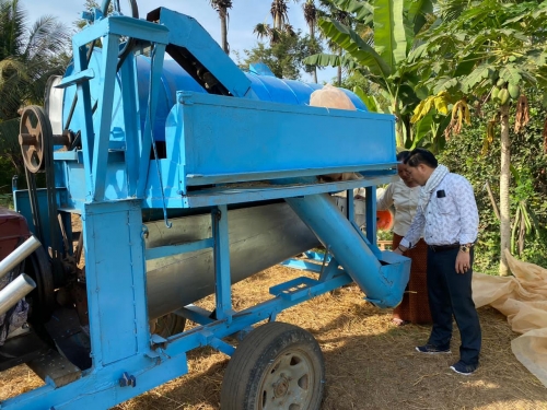 ថ្ងៃចន្ទ១៤រោច ខែមិគសិរ ឆ្នាំជូត ទោស័ក ព.ស. ២៥៦៤ ត្រូវនឹងថ្ងៃទី១៤ ខែធ្នូ ឆ្នាំ២០២០ លោក ឡាយ វិសិដ្ឋ ប្រធានមន្ទីរ រួមជាមួយក្រុមការងារគម្រោង បានចុះចែកសំភារៈដល់ក្រមផលិតពូជស្រូវ SGG ក្នុងគម្រោងបង្កើនផលិតភាពកសិកម្មតាមរយៈការផ្សព្វផ្សាយ ដល់ប្រជាកសិករចំនួន ២១ គ្រួសារ ដែលស្ថិតក្នុងភូមិ ស្ទឹងក្រោម ឃុំ កណ្តៀង ខេត្តពោធិសាត់ ។សំភារៈផ្តល់ក្នុងថ្ងៃនេះ រួមមានមាន ម៉ាស៊ីនបោកស្រូវ០១គ្រឿង ម៉ាស៊ីនដេការ៉ុង ០១គ្រឿង កំណល់ដាក់ស្រូវ. ជញ្ជីងថ្លឹង រទេះរុញ និងប្រដាប់វ៉ាស់សំណើម។