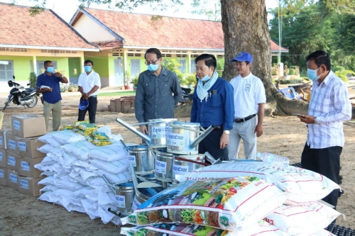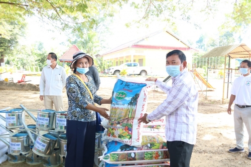 សម្រាប់សម្ភារៈដែលត្រូវចែកជូនប្រជាពលរដ្ឋនាថ្ងៃនេះរួមមាន៖ គ្រាប់ពូជស្ពៃក្រញ៉ាញ់ ៣១០កញ្ចប់, ម្រះ ២០កញ្ចប់, ននោងជ្រុង ២០កញ្ចប់, ត្រកួន ១០ គ.ក្រ, សំណាញ់ទ្រើង ៣០ដុំ, ថាសបណ្តុះកូន ១០០បន្ទះ, ដីបណ្តុះកូន ៦០០គ.ក្រ, ជីចម្រុះ ៥០០គ.ក្រ, ធុងស្រោចដំណាំ ១០គូ។