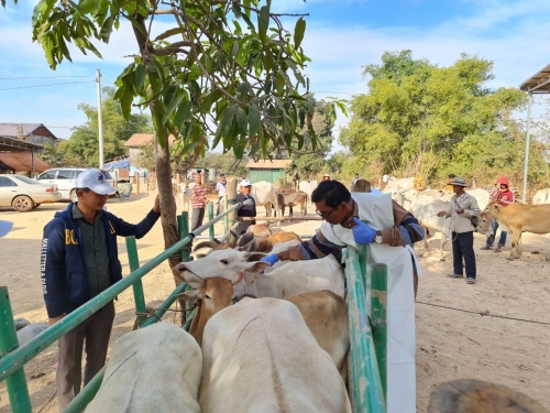 ថ្ងៃ អង្គារ១៤រោច ខែ បុស្ស ឆ្នាំជូត ទោស័ក ពស២៥៦៤ ត្រូវនឹងថ្ងៃទី១២ ខែមករា ឆ្នាំ២០២១ លោក ផាត់ សារុន ប្រធានការិយាល័យ បានដឹកនាំ ក្រុមការងារចុះចាក់វ៉ាក់សាំងការពារជំងឺសាទឹក គោក្របី នៅភូមិខ្មារ ឃុំស្នាមព្រះ ស្រុកបាកាន ដើម្បីពង្រឹងសកម្មភាពយុទ្ធនាការចាក់វ៉ាក់សាំងគោ ក្របី ជូនប្រជាកសិករ។ លទ្ធផលចាក់វ៉ាក់សាំង គោ/ក្របី សរុបបានចំនួន ២០៧ក្បាល/ក្របី ១៦ក្បាល និងបានគ្រោងរៀបចំដាក់ផែនការ បន្តសកម្មភាពចាក់វ៉ាក់សាំងនៅភូមិត្រាំពែរ ឃុំស្នាមព្រះ ស្រុកបាកាន បន្ថែមទៀត។ ស្របពេលជាមួយគ្នានេះដែរ ក្រុមការងារ បានផ្តល់សម្ភារ:បរិក្ខា បសុពេទ្យនិងថ្នាំព្យាបាលសត្វមួយចំនួន ព្រមទាំងណែនាំបច្ចេកទេសបន្ថែមក្នុងការតាមដាន ឃ្លាំមើល ជំងឺឆ្លងសត្វ និងព្យាបាលសត្វ ដល់ភ្នាក់ងារសុខភាពសត្វភូមិផងដែរ។