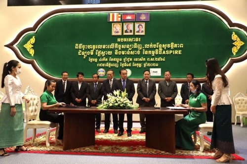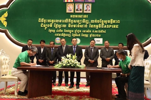 ថ្ងៃចន្ទ ៤កើត ខែផល្គុន ឆ្នាំជូត ទោស័ក ព.ស.២៥៦៤ ត្រូវនឹងថ្ងៃទិ១៥ ខែកុម្ភៈ ឆ្នាំ២០២១ លោក ហៃ ធូរ៉ា អនុប្រធានមន្ទីរ បានចូលរួមពិធីចុះហត្ថលេខាលើកិច្ចសន្យាទិញ-លក់បន្លែសុវត្ថិភាពដំឡូងមី ផ្លែស្វាយនិងមាន់សាច់របស់កម្មវិធីASPIRE ក្រោម