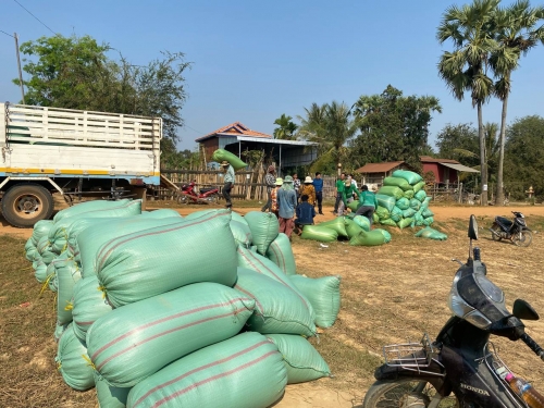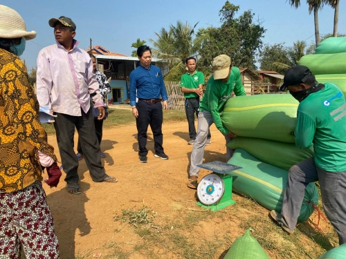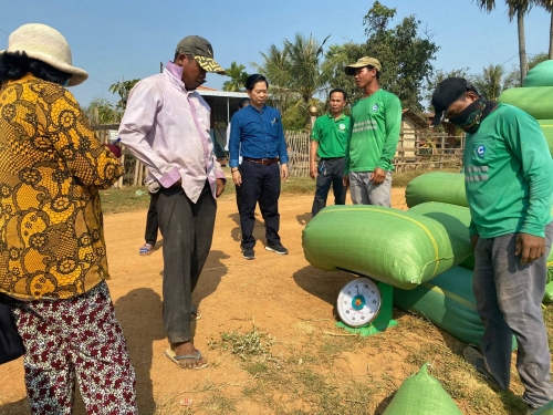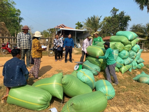 ឆ្លៀតឱកាសនោះក្រុមការងារបានចុះពិនិត្យ ការងារប្រមូលស្រូវពូជOMដោយទទួលបានទិន្នផលខ្ពស់ចាប់ពី ៦តោន ទៅ ៧តោននៅតំបន់នោះដោយ តំលៃលក់ ចេញ បាន ៩០០រៀល/០១គ.ក្រ។