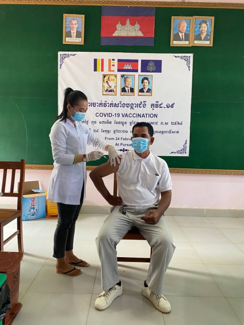 ថ្ងៃអង្គារ ១១ រោច ខែផល្គុន ឆ្នាំជូត ទោស័ក ព.ស. ២៥៦៤ ត្រូវនឹងថ្ងៃទី ០៩ ខែមីនា ឆ្នាំ២០២១ លោក ឡាយ វិសិដ្ឋ ប្រធានមន្ទីរកសិកម្ម រុក្ខាប្រមាញ់ និងនេសាទខេត្តពោធិ៍សាត់ ព្រមទាំងលោក លោកស្រី ប្រធាន អនុប្រធានការិយាល័យជំនាញ និងមន្ត្រីរាជការរបស់មន្ទីរកសិកម្ម បានទទួលការចាក់វ៉ាក់សាំងការពារជំងឺកូវីដ-១៩ នៅមន្ទីរពេទ្យបង្អែកខេត្តពោធិ៍សាត់។ចំពោះមន្រ្តីដែលមិនទាន់ទទួលវ៉ាក់សាំង និងចូលរួមជាបន្តបន្ទាប់ផងដែរ។