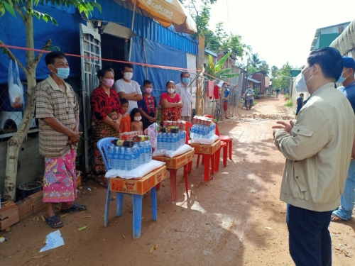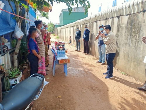 ថ្ងៃព្រហស្បត្តិ៍៩កើត ខែជេស្ឋ ឆ្នាំឆ្លូវ ត្រីស័ក ព.ស២៥៦៥ ត្រូវនឹងថ្ងៃទី២០ ខែឧសភា ឆ្នាំ២០២១ វេលាម៉ោង ៨ព្រឹក លោក ឡាយ វិសិដ្ឋ ប្រធានមន្ទីរកសិកម្ម រុក្ខាប្រមាញ់ និងនេសាទខេត្ត និងក្រុមការងារ មេភូមិ ប្រជាការពារភូមិស្ពានថ្ម បានចុះសួរសុខទុក្ខបងប្អូនប្រជាពលរដ្ឋ ៣គ្រួសារដែលបានប៉ះពាល់ប្រយោលជាមួយបុរសដែលបានចូលផ្សារធំថ្មីពោធិ៍សាត់ កាលពីល្ងាចថ្ងៃទី១៨ ខែឧសភា ឆ្នាំ២០២១ (ដាក់ភាសុីម៉ូតូ) នឹងបានការឯកភាពពីក្រុមគ្រូពេទ្យឱ្យធ្វើចត្តាឡីស័កនៅផ្ទះ ទាំង៣នាក់ នឹងអ្នកពាក់ព័ន្ធក្នុងក្រុមគ្រួសារ សរុប៧នាក់ទៀត នៅភូមិស្ពានថ្ម សង្កាត់រលាប។ លោកបានធ្វើការណែនាំកុំឱ្យដើរទៅណាមកណាឱ្យក្នុងអំឡុងពេលធ្វើចត្តាឡីស័ក ថែរក្សាសុខភាព អនុវត្តតាមការណែនាំរបស់ក្រសួងសុខាភិបាល និងវិធាន ៣ការពារ ៣កុំ។ លោកបានពាំនាំអំណោយដ៏ថ្លៃថ្លារបស់ឯកឧត្តមអភិបាលនៃគណៈអភិបាលខេត្ត និងលោកជំទាវ នូវអង្ករចំនួន ៣០គីឡូក្រាមនិងក្រុមការងារ មី៣កេស ត្រីខ ៣យួរ ទឹកត្រី ៣ដប ទឹកសុីអុីវ ៣ដប ទឹកសុទ្ធ៦យួរជួយឧបត្ថម្ភបន្ថែម ក្នុង១គ្រួសារៗ ទទួលបាន អង្ករ១០គីឡូក្រាម មី ១កេស ត្រីខ ១យួរ ទឹកត្រី ១ដប ទឹកសុីអុីវ ១ដប ទឹកសុទ្ធ ២យួរ ដើម្បីជួយសម្រាលក្នុងបន្ទុកជីវភាពប្រចាំថ្ងៃក្នុងអំឡុងពេលធ្វើចត្តាឡីស័ក១៤ថ្ងៃនៅក្នុងផ្ទះ។