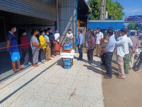 រំហាត់ប្រាណអនុវត្តតាមការណែនាំរបស់ក្រសួងសុខាភិបាល និងវិធាន ៣ការពារ ៣កុំ។ លោកបានពាំនាំអំណោយដ៏ថ្លៃថ្លារបស់ឯកឧត្តមអភិបាលនៃគណៈអភិបាលខេត្ត និងលោកជំទាវ និងក្រុមការងារ ក្នុងមួយខ្នងផ្ទះ ទទួលបាន អង្ករចំនួន៥០គីឡូក្រាម ,ត្រីខ១យួរ ទឹកសុីអុីវ១យួរ និងក្រុមការងារ មី ១កេស ទឹកសុទ្ធ៥យួរ ដើម្បីជួយសម្រាលក្នុងបន្ទុកជីវភាពប្រចាំថ្ងៃក្នុងអំឡុងពេលធ្វើចត្តាឡីស័ករយៈពេល១៤ថ្ងៃ។ *សរុបរួមជាមានៈ