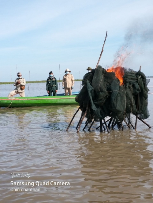 បាលមេទឹក និងយោធាខេត្ត បានចុះធ្វើការបំផ្លាញនិងដុតកំទេច ចោលវត្ថុតាងនៅនិងកន្លែងជានេសាទដោយប្រើឧបករណ៏ទំនើបនៅក្នុងរដូវបិទនេសាទ នៅចំណុចក្បាលជ្រោយរានអំបិល ភូមិព្រែកក្រ ឃុំមេទឹក ស្រុកបាកាន អនុវត្តបាន២ករណីវត្ថុតាងត្រូវ