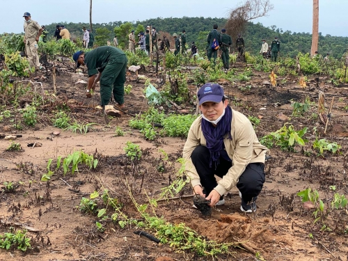 ២.សកម្មភាពដាំ និងស្ថារឡើងវិញ ដែលអនុវត្តដោយក្រុមការងារមន្ទីរ កសិកម្ម បានដាំកូនឈើសរុបចំនួន ៦០០ ដើម ក្នុងនោះកូនក្ងោក ២០០ដើម ច្រេស២០០ដើម ក្រញូង១៥០ដើម និងកូនកានីន ៥០ដើម។