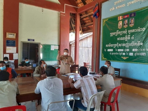 -អង្គប្រជុំបានអញ្ជើញប្រជាពលរដ្ឋចំនួន ១២គ្រួសារ ដែលមានការលួច រានភ្ជួរដី និងរំលោភដីបឹងក្នុងដីតំបន់៣ នៅចំណុច បឹងឈូកសភូមិតាណៃ ឃុំអូរតាប៉ោង មកប្រជុំ និងជម្រាបជូនពីច្បាប់ស្តីពីជលផល ក្នុងមាត្រា៩៨ ចំណុច១ជាប់ទោសទណ្ឋពី០៣ទៅ៥ឆ្នាំ ។