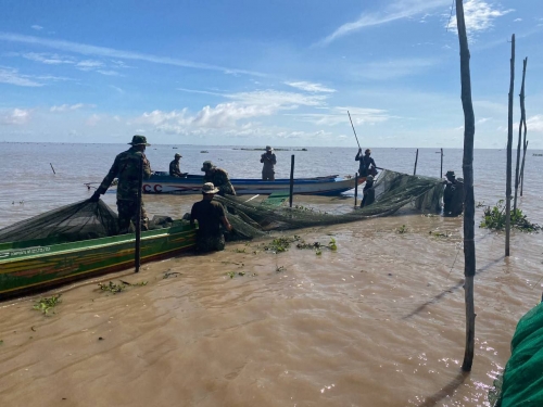 លោកនាយ សង្កាត់កំពង់លួង មន្ដ្រីបរិស្ថាន យោធាខេត្ត បានចូលរួមជាមួយក្រុមការងារថ្នាក់ជាតិ ដឹកនាំដោយលោក សែម រ៉ាឌី អនុប្រធានការិយាល័យវិវាទកម្ម នៃរដ្ឋបាលជលផល រួមមានលោកនាយរងអធិការដ្ឋានរដ្ឋបាលជលផលខាងត្បូងបឹងទន្លេសាប និងមន្ដ្រីជំនាញជាច្រើនរូបទៀត ដោយប្រើកម្លាំងសរុប២៣នាក់ មធ្យោបាយកាណូតចំនួន ០៧គ្រឿង ចុះត្រួតពិនិត្យ និងបង្រ្កាបបទល្មើសជលផលចាប់ពីឃុំស្នាអន្សា រហូតដល់ចំនុចជ្រោយវែង ព្រំប្រទល់(ស្រុកក្រគរ-កណ្ដៀង) ជាលទ្ធផលបាន ០២ ករណី រុះរើបំផ្លាញចោលវត្ថុតាងរួមមាន